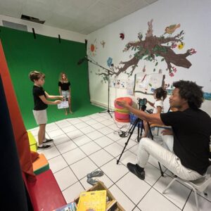 2 / Tournage de films courts sur fond vert des acteurs et découverte des coulisses du monde cinématographique (manipulation de la caméra, réglage micros, …).