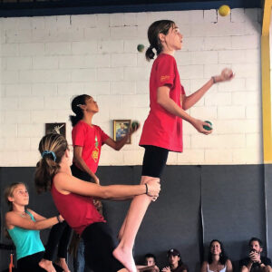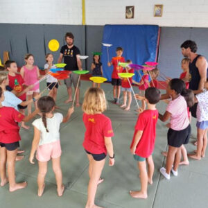 – Manipulation et jonglerie avec différents supports : foulards, bâtons du diable, assiettes chinoises, anneaux, balles, massues, diabolo.
